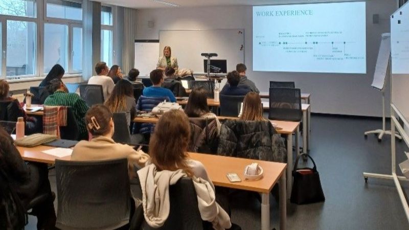 Ms. Perc, a certified IPMA C level project manager, has an impressive track record of managing teams across Austria, Germany, and Asia. Her extensive experience highlights her adaptability and expertise in bridging diverse cultural and professional landscapes. She shared her professional journey, offering students an inspiring look into what it takes to succeed in a globalized work environment in multinational corporation.